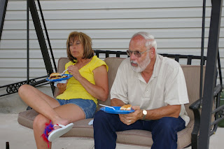 After we cleaned up the great big mess that we had made with water balloons and shaving cream, we all headed over to my dads so that the kids could light their fireworks until the "big show".
